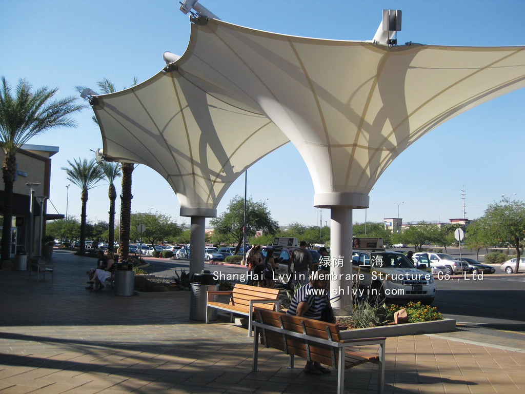 3. 永久性性膜材,使用年限30年以上。對太陽能的反射率高,所以熱吸收量很少。即使在夏季炎熱的日光的照射下室內也不會受太大影響。正是因為這種劃時代性的膜材料的發(fā)明,才使膜結構建筑從人們想象中的帳篷或臨時性建筑發(fā)展成現(xiàn)代化的永久性建筑。
